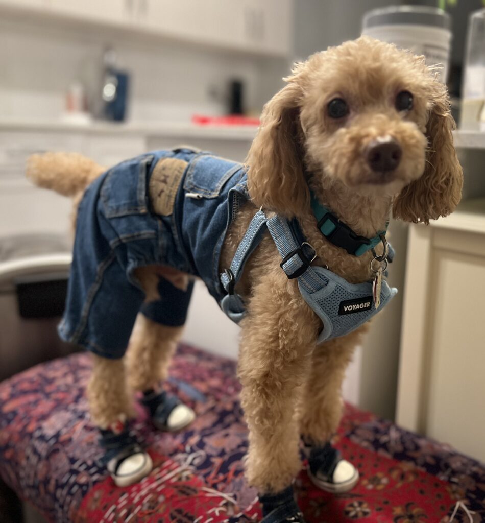 ”Sachi is a two-year-old Miniature Poodle. His favorite place is my closet where he enjoys exploring fashion style. He is tidy and always carries an extra plastic bag in his back pocket. Please meet Sachi and pet him. He responds with a wagging tail :)”